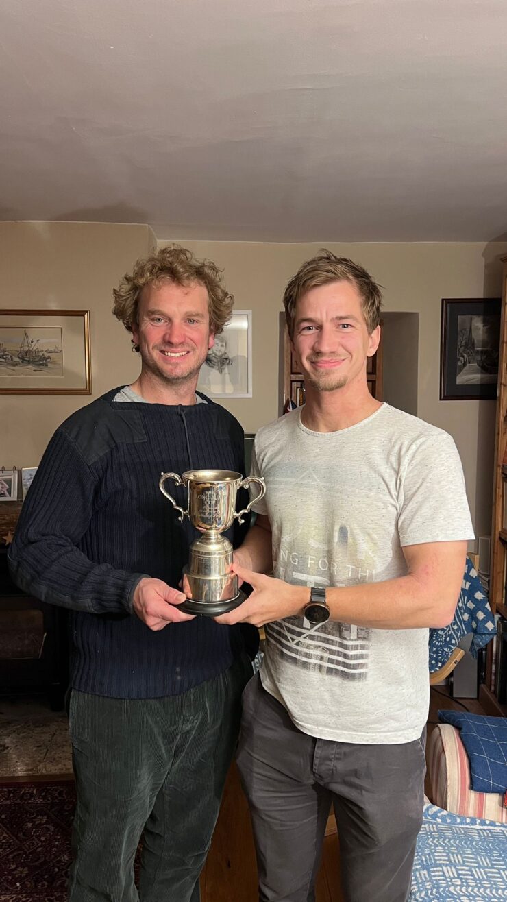 We can now share a picture of 2024 winners together now that Dom Bareford has returned to UK and Laurence Wigfield has graciously allowed Dom to display the Long Jump Trophy on his mantlepiece until it is claimed by the next winners.