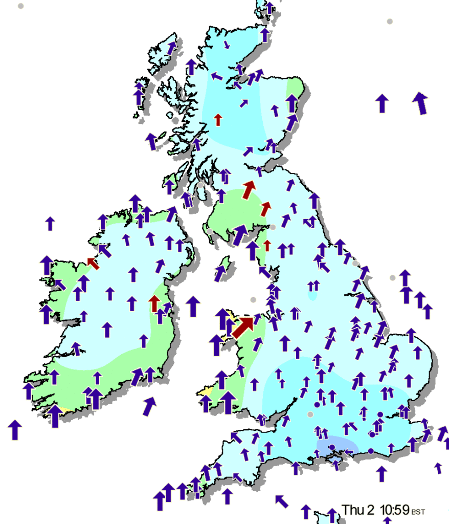 Today, northern and far western parts of the UK will be generally cloudy and breezy with spells of rain, heavy in the evening. Further south and east, dry with variable cloud and lighter winds.
