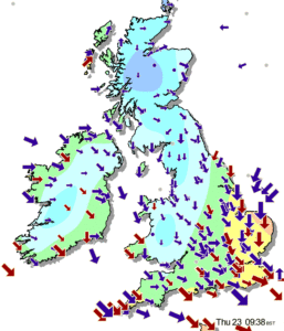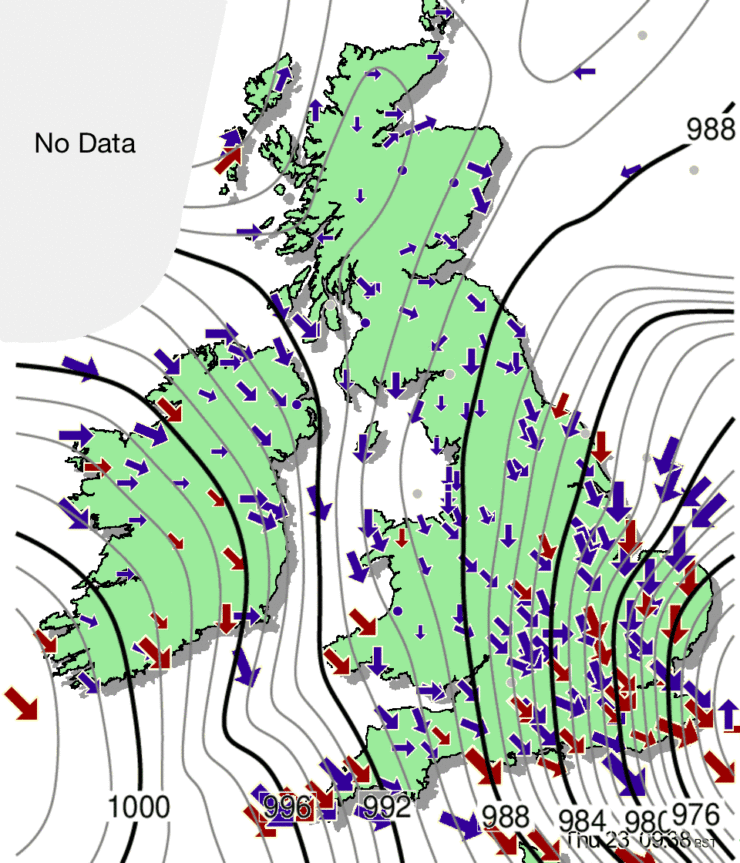 Today, the south and east will see strong, gusty winds. Heavy downpours for eastern England. Showers in western England and Wales. The north and west will be drier, with sunshine in western Scotland.